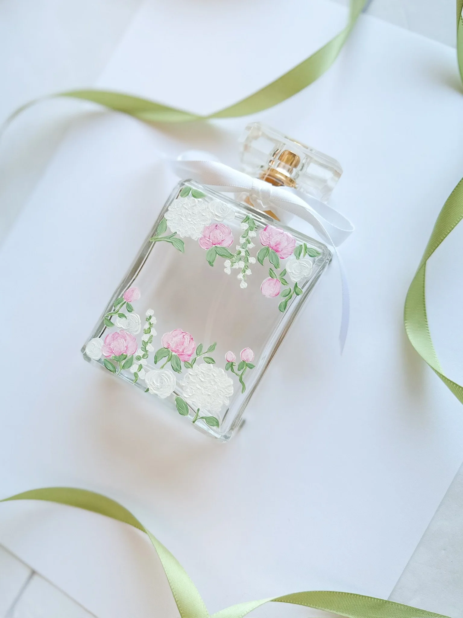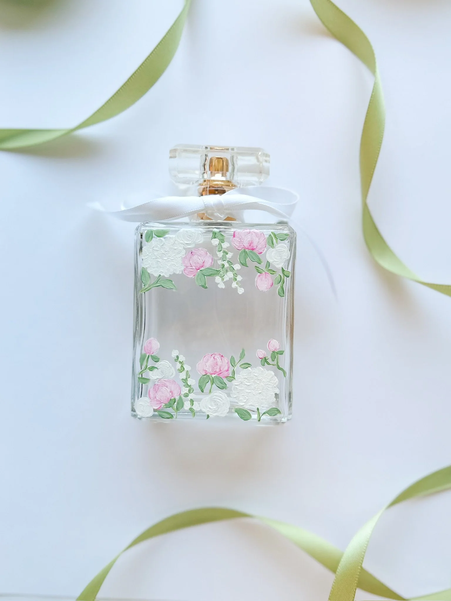 Hand painted perfume bottle perfect for a wedding keepsake, Christmas gift, birthday gift, or to add a little extra decor to your armoire.